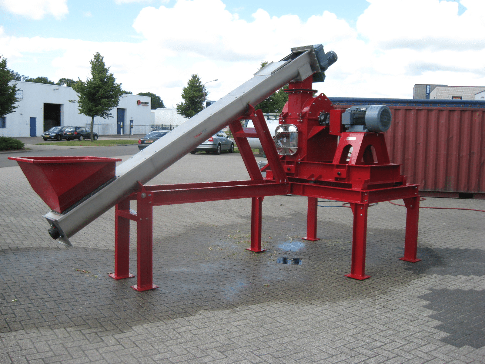 The size reduction system consists of a hopper / tipping container / bucket or conveyor belt that feeds the material directly to the resizers.